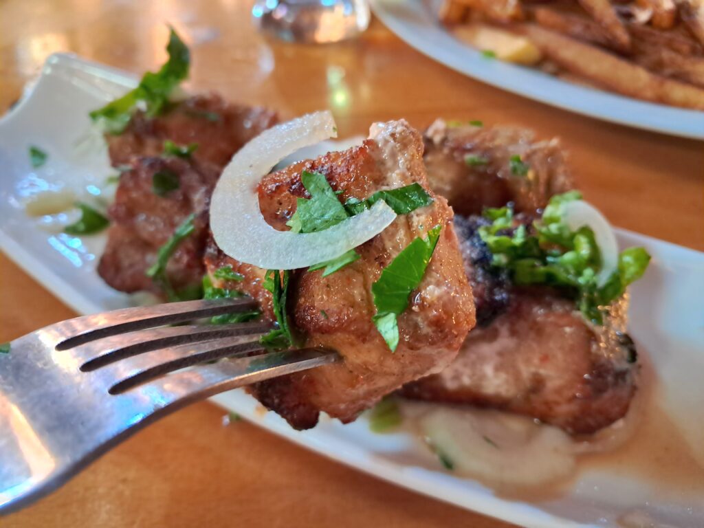 肉の柔らかさも信じられないほどのもので、ジョージア全国で食べたムツヴァディの中でもトップレベルの美味しさでした。