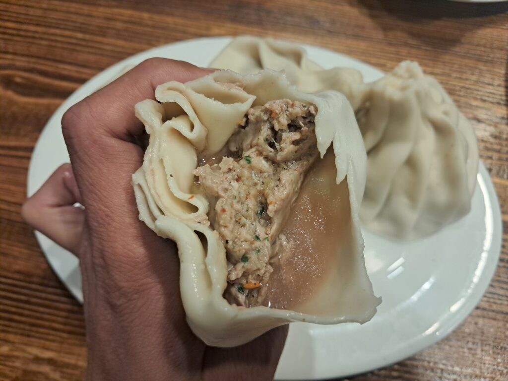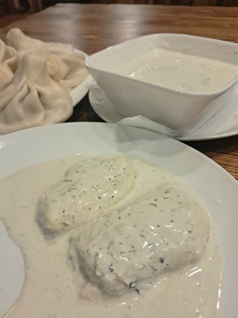 平べったくぺちゃっとした巨大な水餃子は、ジョージアの他エリアではまず見かけない料理。