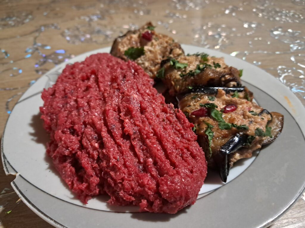 ジョージアの牛肉はとにかく筋張っていて硬いことが多く、グリルには向かないのですが、仔牛肉であればジューシーで柔らかな食感が楽しめます。