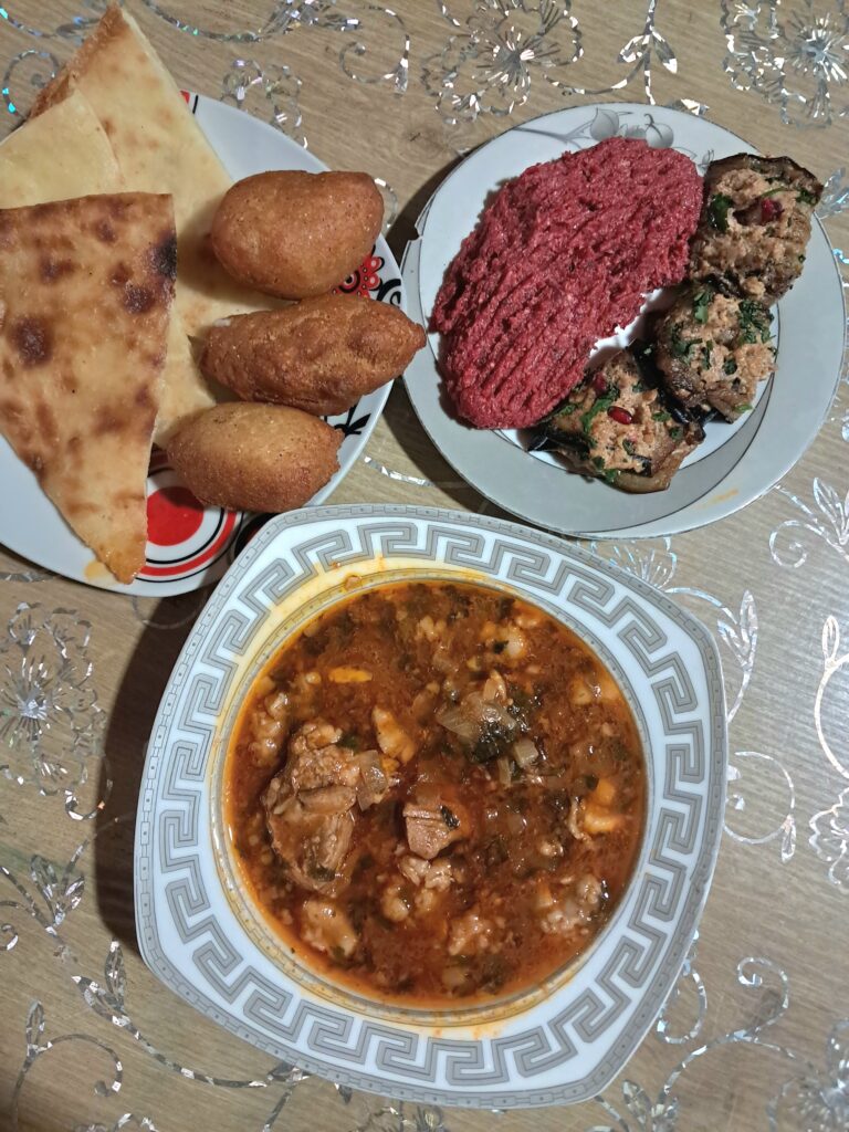 アプハズラは、牛や豚の挽き肉を俵型に丸めて牛の大膜で包んだものをオーブンでグリルしたハンバーグのような料理。