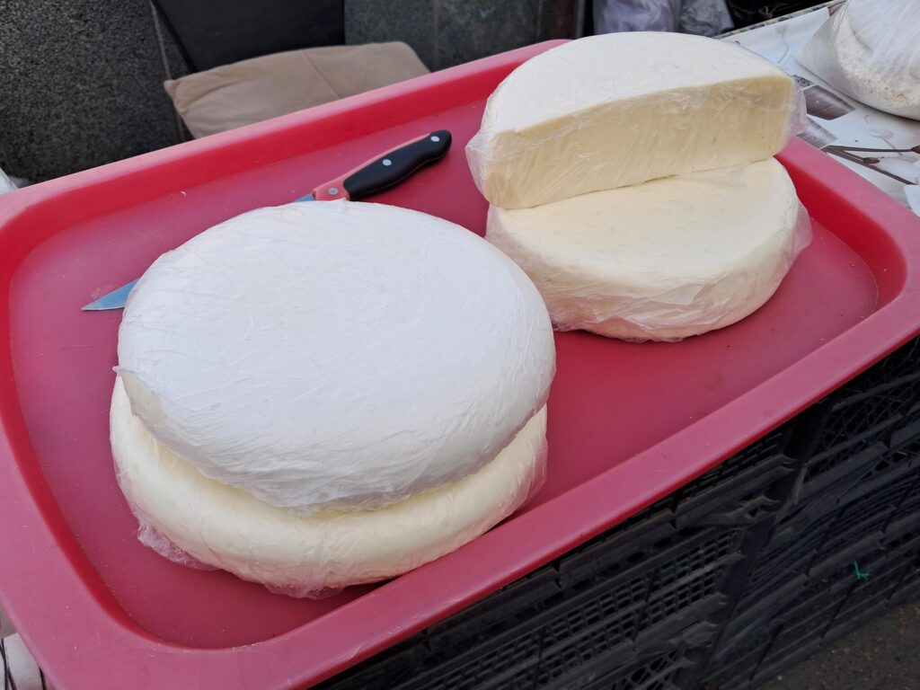 そこら中で自家製のスルグニが売られる