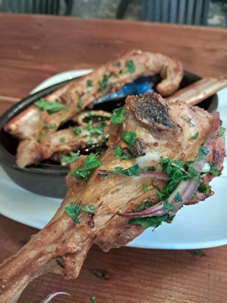 その名の通り、仔牛の骨付きリブ肉をたっぷりのアジカと和えてグリルしたもので、もう間違いなく美味しいやつです。