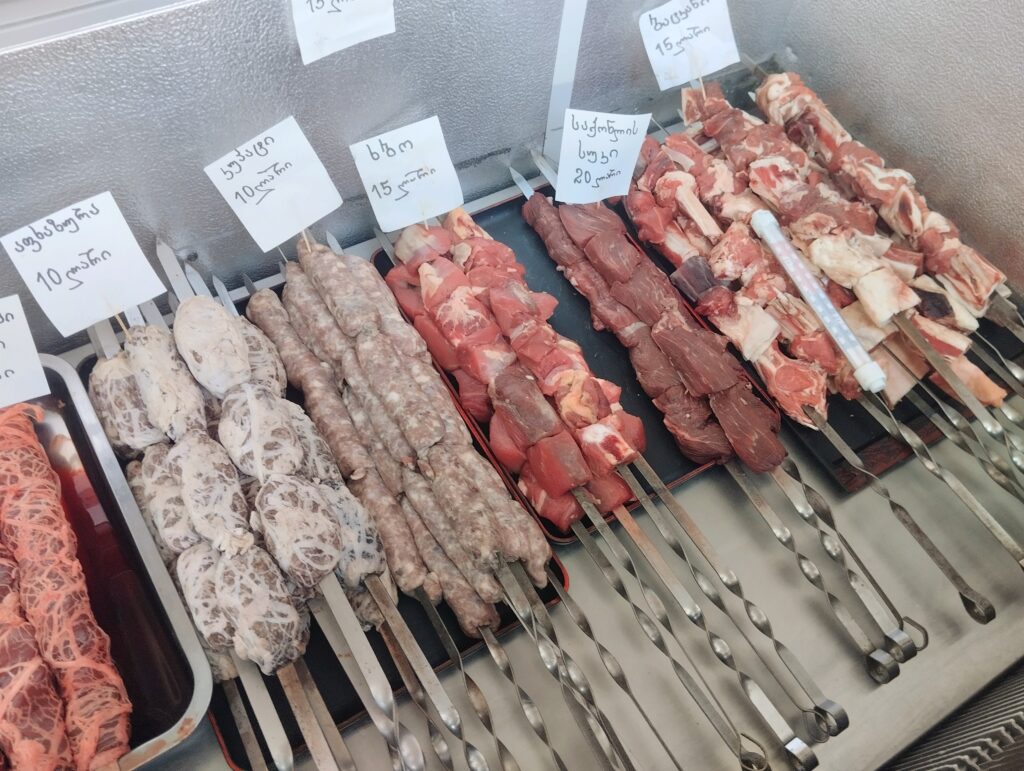 ジョージア全国でポピュラーな豚肉の串刺しBBQといえば、ムツヴァディ(Mtsvadi / მცვადი)。