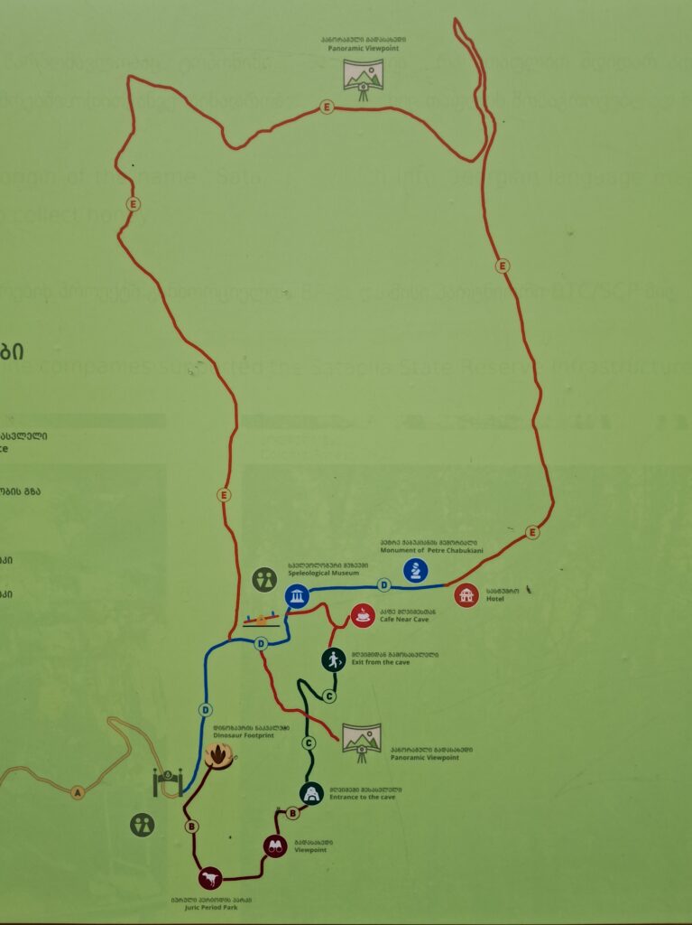 ルートの前半(恐竜の足跡→コルキスの原生林→サタプリア洞窟)はガイドと一緒に少人数グループで周るようになっており、後半(ジュラシックパーク→展望台)はガイドなしで周ることに。