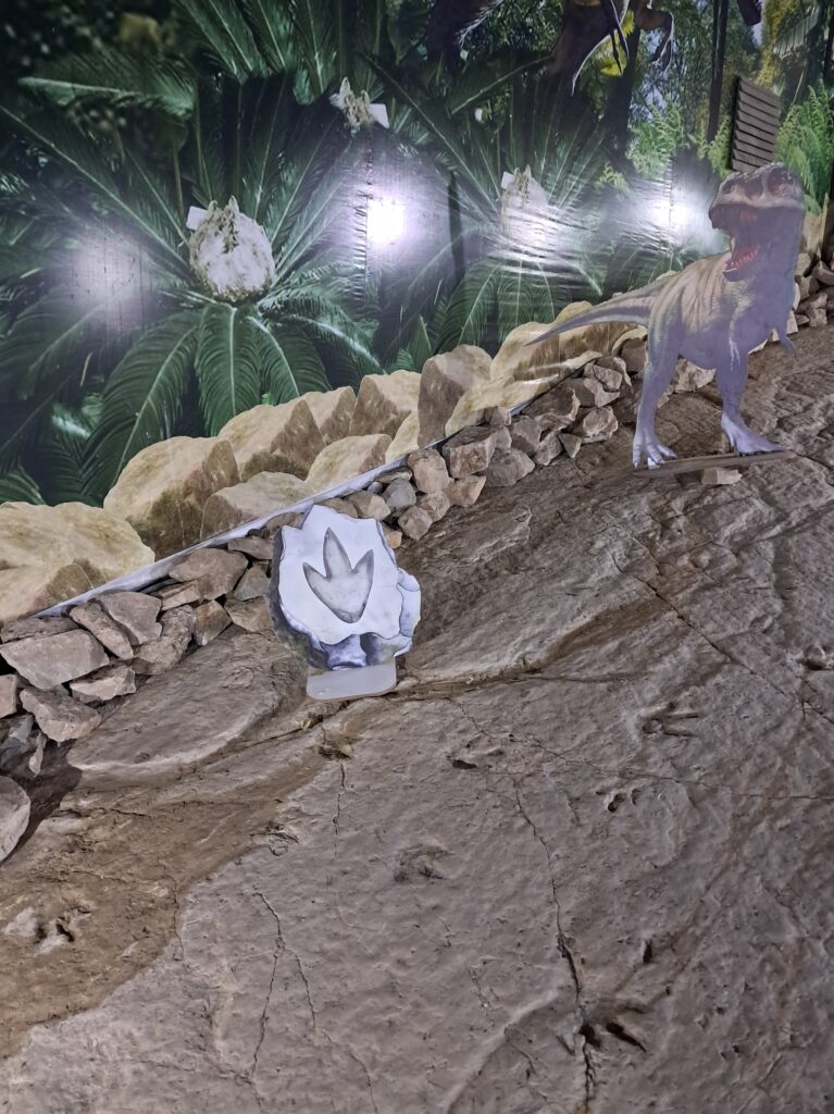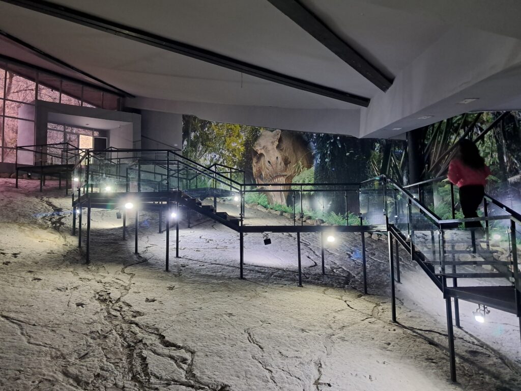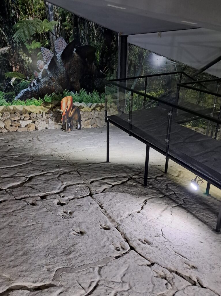 入場からいきなりの観光ハイライトとなる恐竜の足跡。