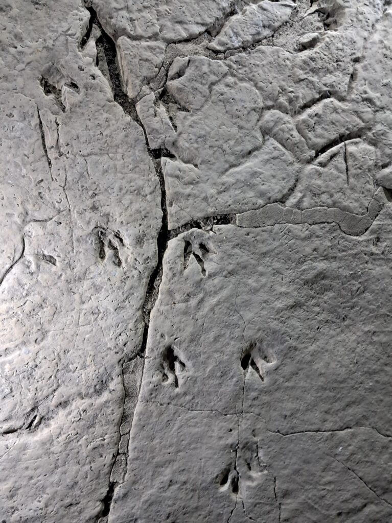石灰岩には大小さまざまな恐竜の足跡が残っており、その保存状態の良さに驚かされます。