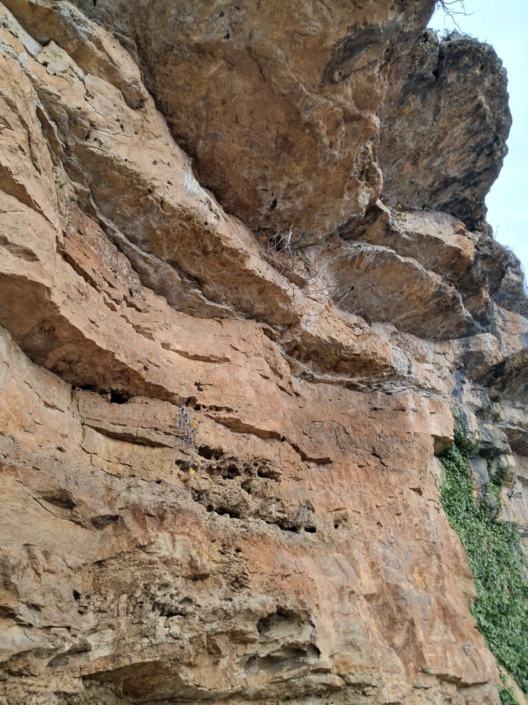 展望台付近にある崖には、サタプリア固有種の蜂が岩肌を利用して作った巣の跡が残っています。▼