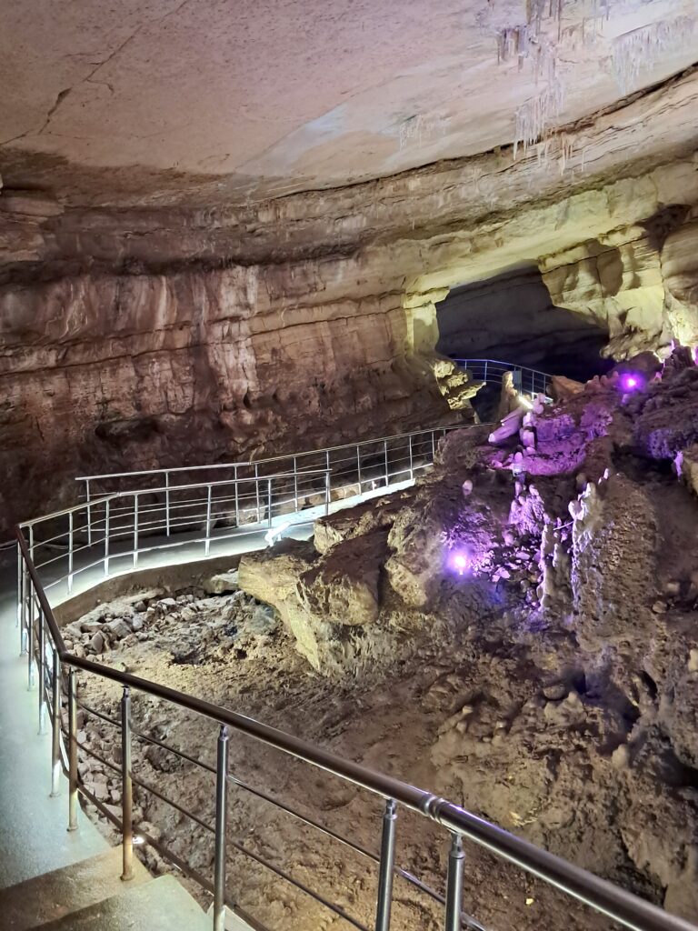 建物を入ると、むき出しの石灰岩の上に遊歩道が敷かれている異様な光景が。
