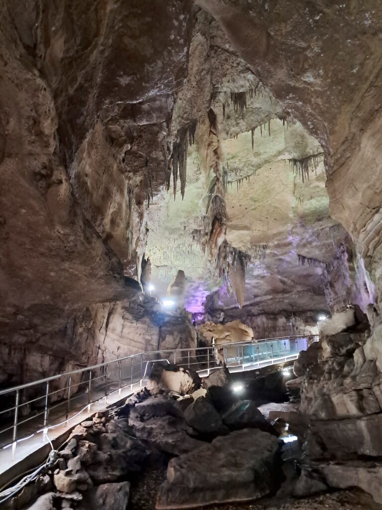 洞窟内の鍾乳石はライトアップがされており、色合いの感じや光の当て方も結構きれい。