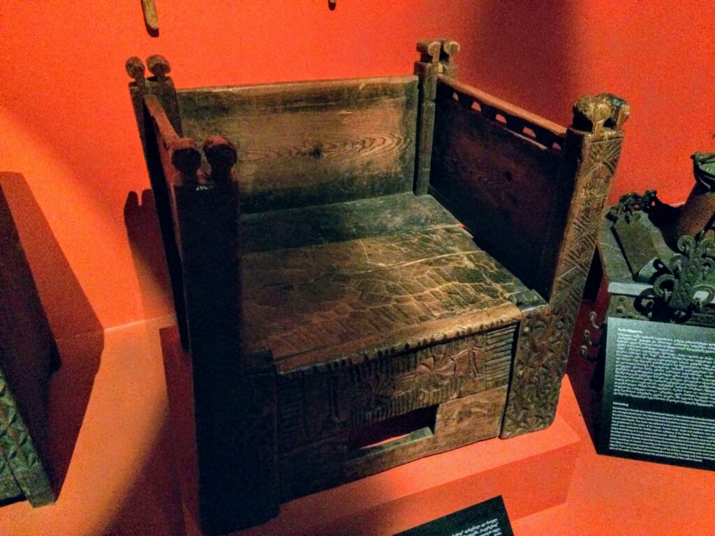 ▲スヴァネティ地方の伝統的な家屋内で必ず見られるのが、この独特の細長い家具。