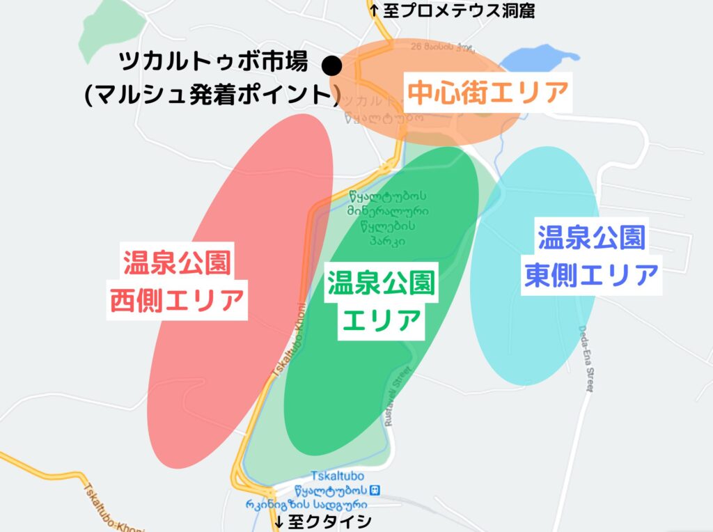 黄色:クタイシ行き30番/34番マルシュ発着ポイント